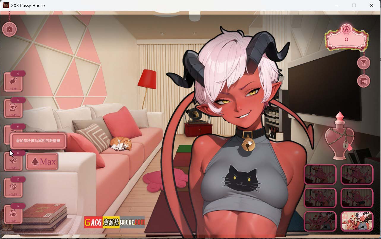 作为一款SLG游戏,《Pussy House》的核心玩法自然是策略规划。玩家需要通过合理的资源分配来提升自己的会所。例如: