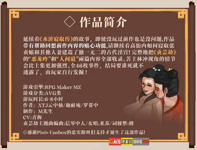 NTRPG水浒2:水浒乱寝传v2.6.0919 官方中文版是一款以中国四大名著之一《水浒传》为背景的RPG(角色扮演游戏)。该游戏由官方团队开发,并经过汉化处理,确保玩家能够轻松理解和沉浸于游戏剧情之中。作为《水浒乱寝传》系列的续作,v2.6.0919版本在玩法、剧情和画面等方面均有显著提升。